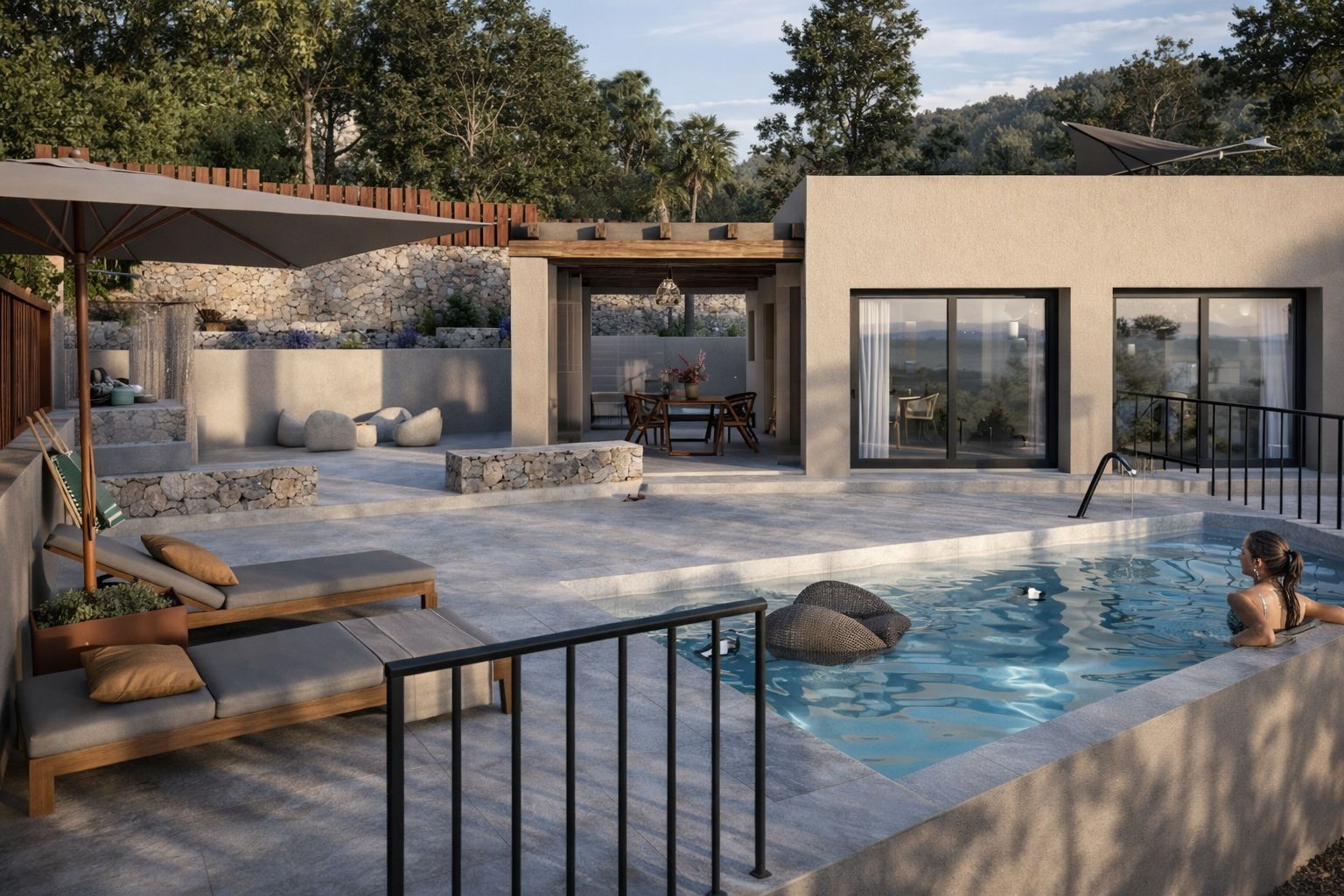 El corazón de la casa es el amplio salón-comedor con cocina de diseño abierta, un espacio lleno de luz natural que destaca por su arquitectura clara y la fluida conexión con las zonas exteriores. En el cuidado exterior, le espera una atractiva piscina con una amplia terraza y cocina exterior, perfecta para relajarse bajo el sol o disfrutar de veladas con familiares y amigos.