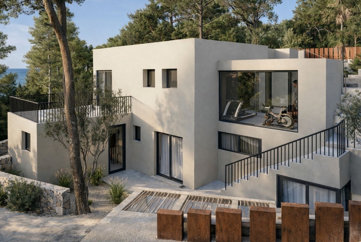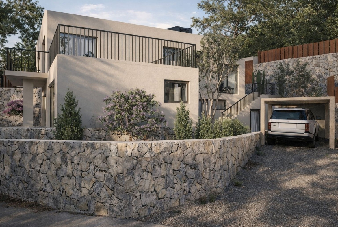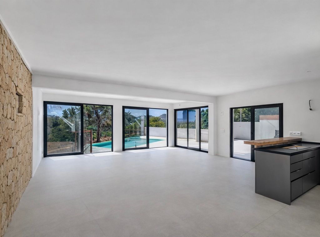 El corazón de la casa es el amplio salón-comedor con cocina de diseño abierta, un espacio lleno de luz natural que destaca por su arquitectura clara y la fluida conexión con las zonas exteriores. En el cuidado exterior, le espera una atractiva piscina con una amplia terraza y cocina exterior, perfecta para relajarse bajo el sol o disfrutar de veladas con familiares y amigos.