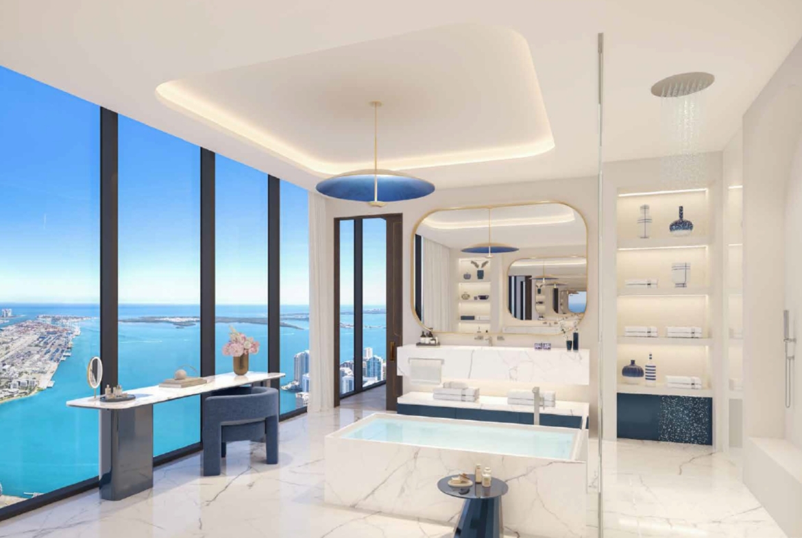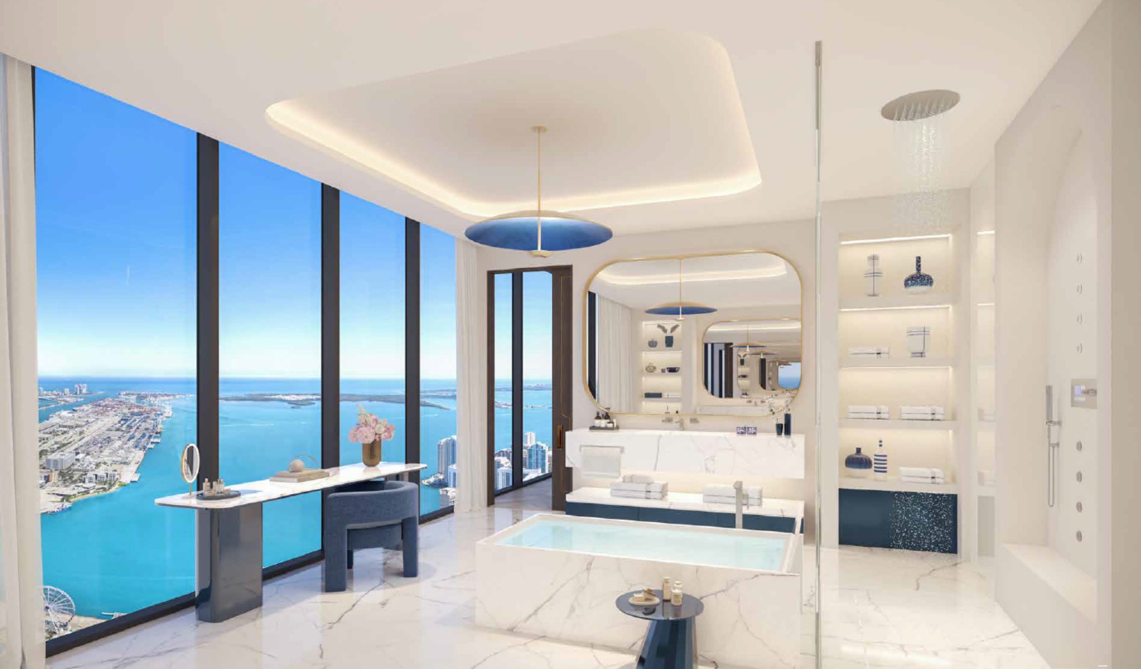 - Ventanales de suelo a techo de hasta 3,3 metros, con impresionantes vistas de la ciudad, el skyline del downtown, Miami Beach y el océano Atlántico.